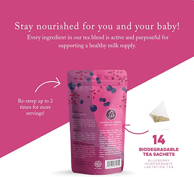 Blueberry Pomegranate Lactation Tea is artfully blended with organic milk-boosting herbs and refreshing hints of juicy blueberry and tart pomegranate. Every breastfeeding journey is unique. We believe your tea should be too. Feed with love. Sip with purpose.