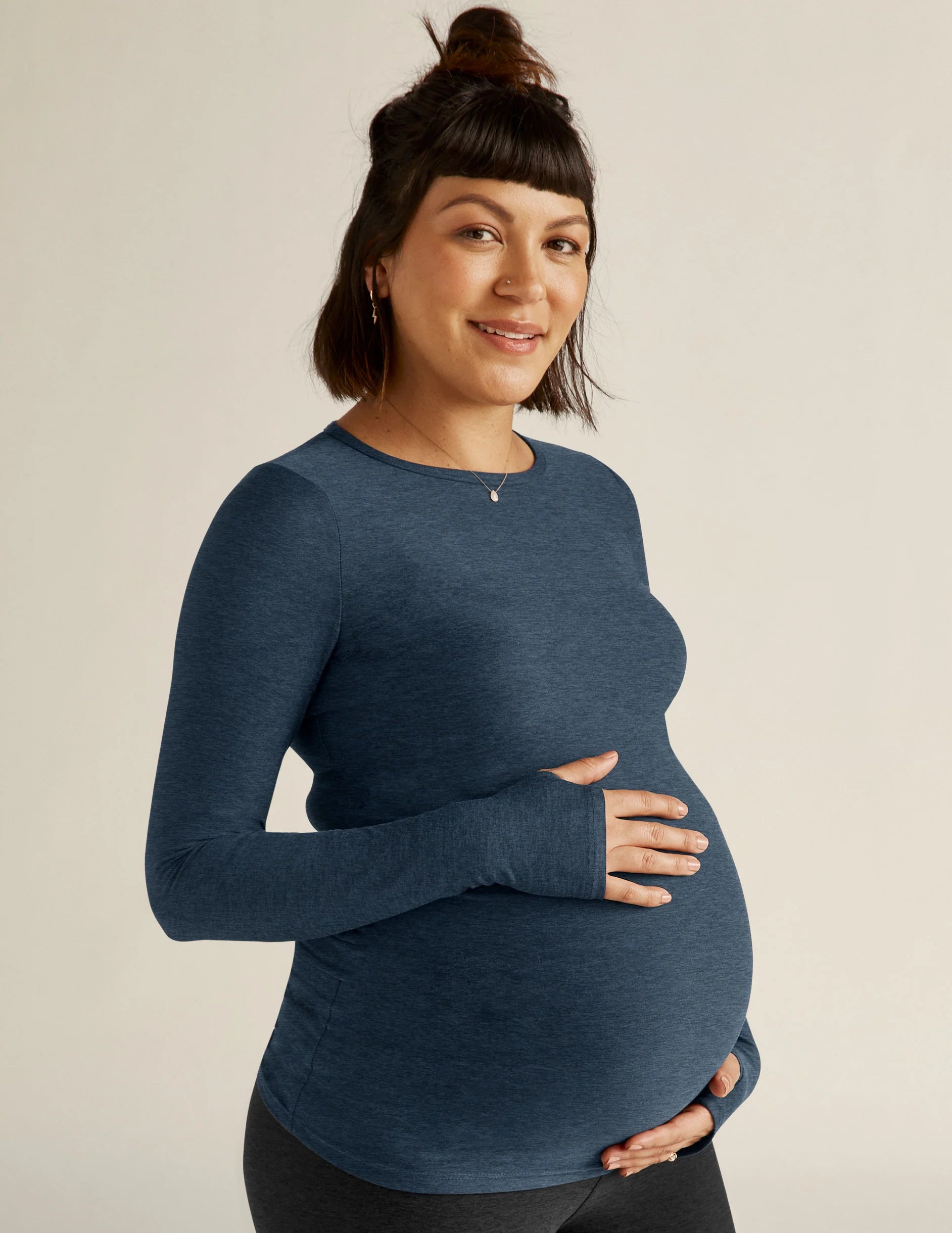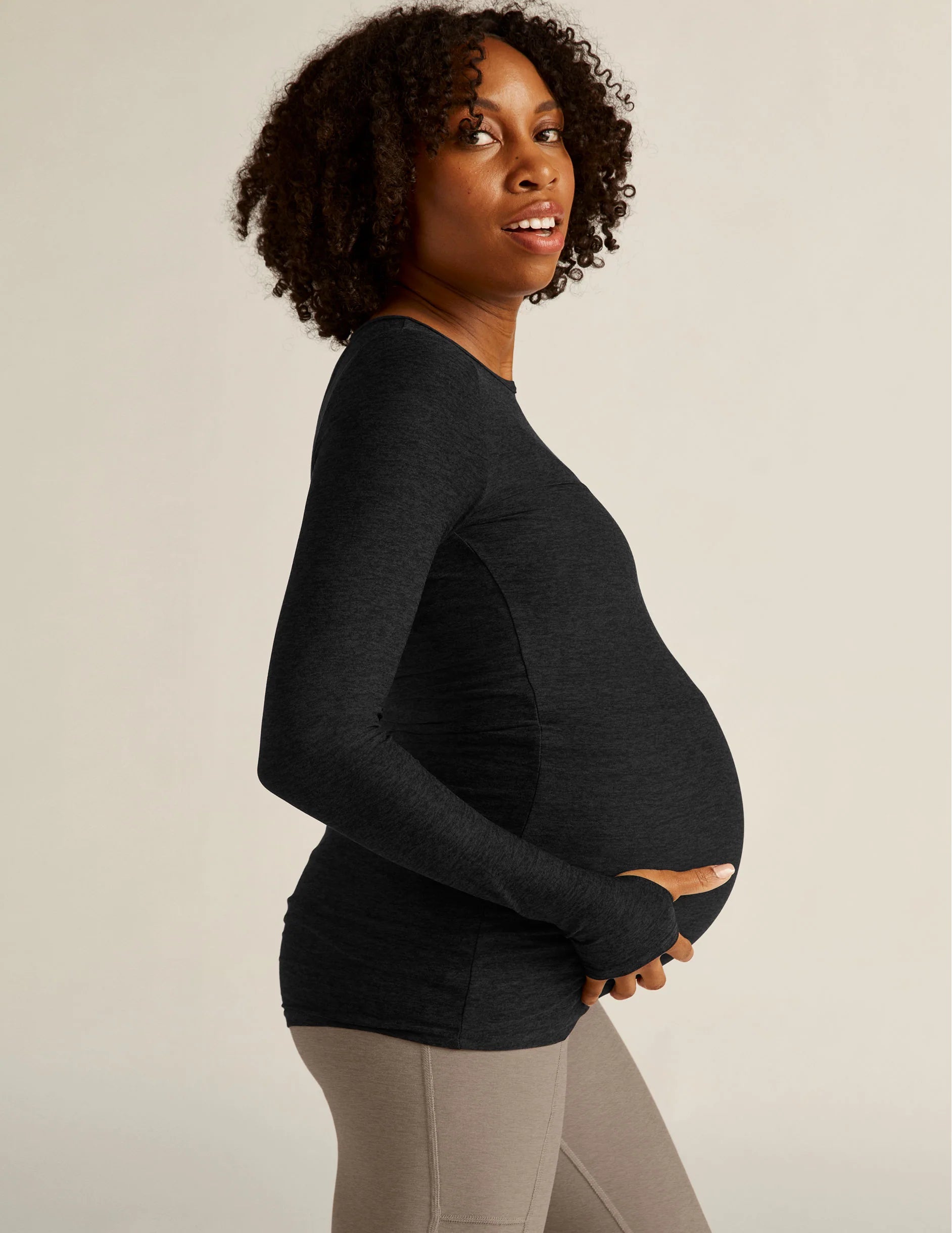 Every mama needs an airy, light and functional maternity long sleeve top you can wear everywhere. An effortless, essential maternity pullover made from the lighter version of our insanely soft Spacedye fabric. With ample breathability so you can nap in it, play in it, or wear to that prenatal yoga class.