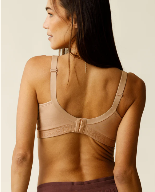 The nursing T-shirt bra you’ll reach for every day. Perfect from the first trimester to the fourth and beyond, it features contoured cups that provide a smooth silhouette under clothes and clip-down access that makes breastfeeding simple.