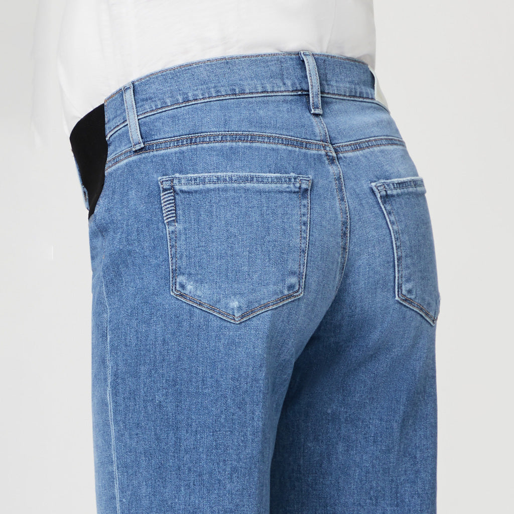 A must for your maternity wardrobe, these PAIGE jeans feel dependably comfortable with super-stretch fabric and a wide leg cut. Heavy fading and frayed cuffs bring a touch of well-traveled style to the mix.