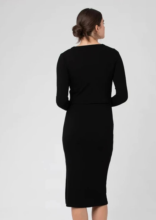 Cut from a high stretch rib knit, our Penny Double Up Nursing Set is a versatile duo.  Designed to be worn together or separately with other items from your wardrobe. The tank dress has side seam split and a front placket for nursing ease.  The top is long sleeve and cropped length. Easy to wear at any stage; during and after pregnancy.