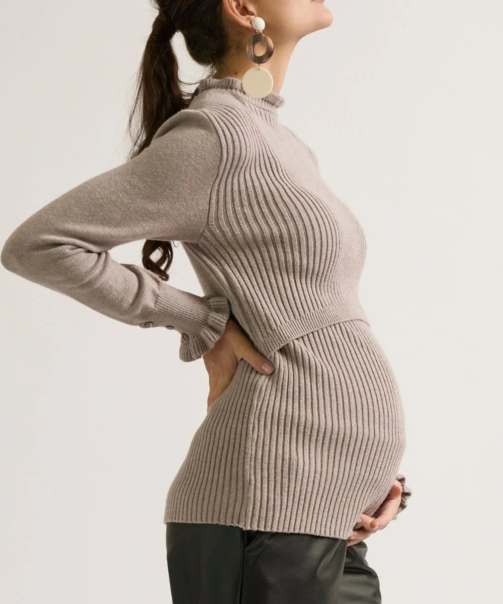 The Long Sleeve Ribbed Sweater Midi Maternity Dress