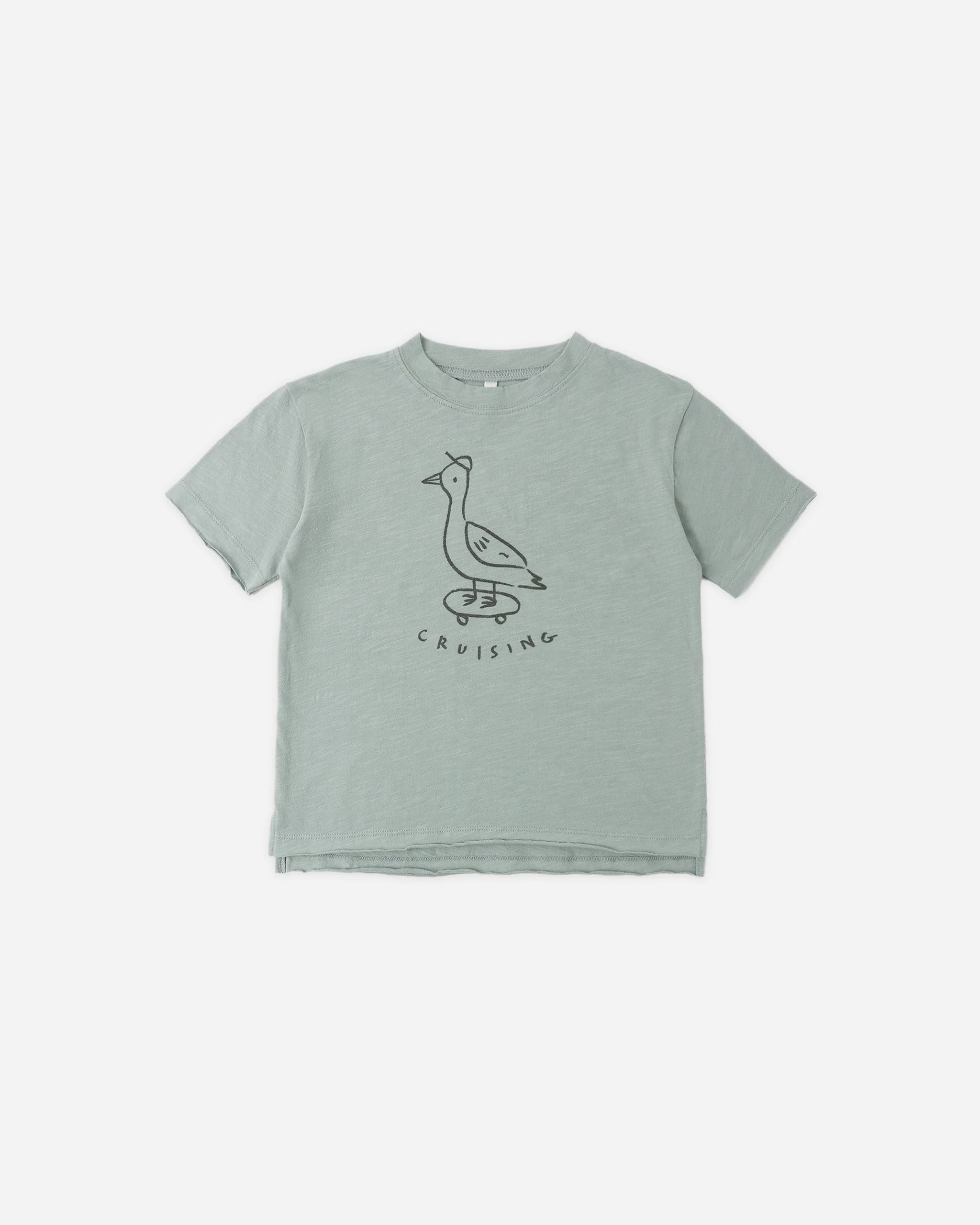 This comfortable tee is made from our cotton slub fabric with a raw finish hemline for an edgy flare. Shoulder snaps included on sizes 3-6M - 18-24M for easy changing.