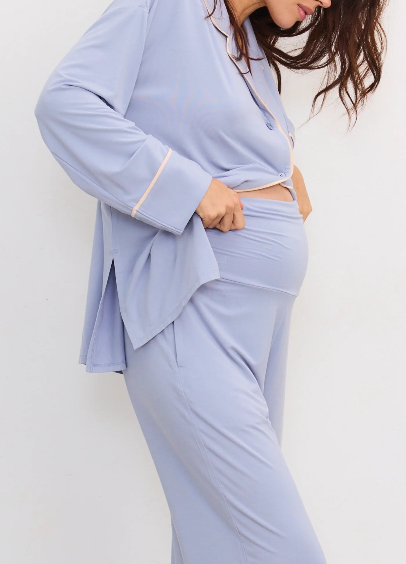 If you're anything like us, you'll be spending a lot of time in PJs and this is our dream pair. Made from a buttery soft, stretchy jersey, they're designed to be worn before, during, and after pregnancy, with a relaxed fit, nursing-friendly access, and a waistband that sits comfortably over or under the belly.