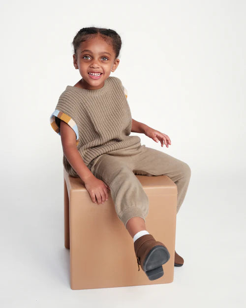 Introducing the Chunky Vest! Soft as can be, the sleeveless Vest has an edgy, oversized design for maximum comfort and can be worn over a long sleeve top, a body suit or styled alone. Crafted from a luxuriously soft, BCI cotton and finished with an elegant ribbed design, this cool knitted Vest is the cutest addition to your little one's wardrobe.