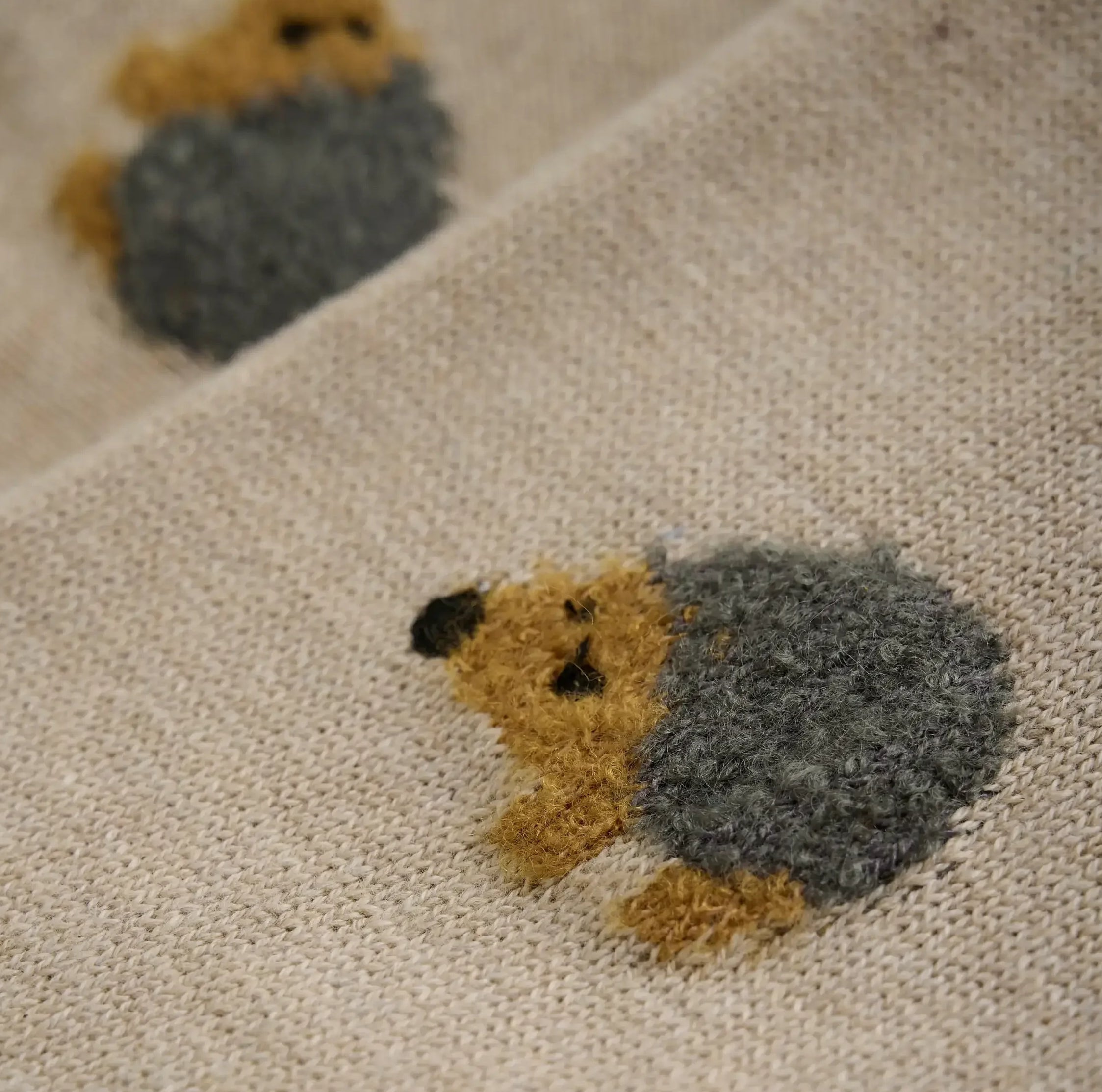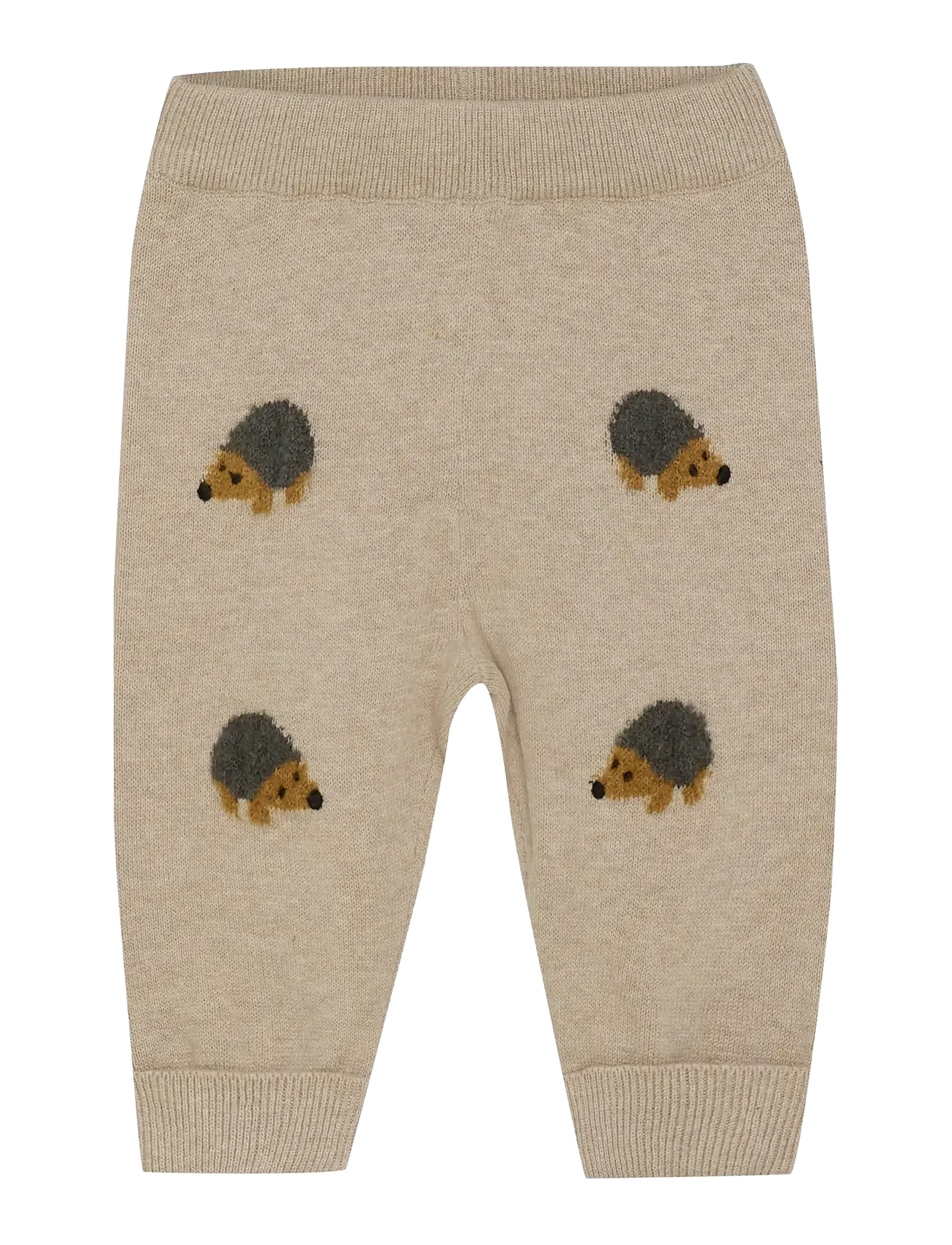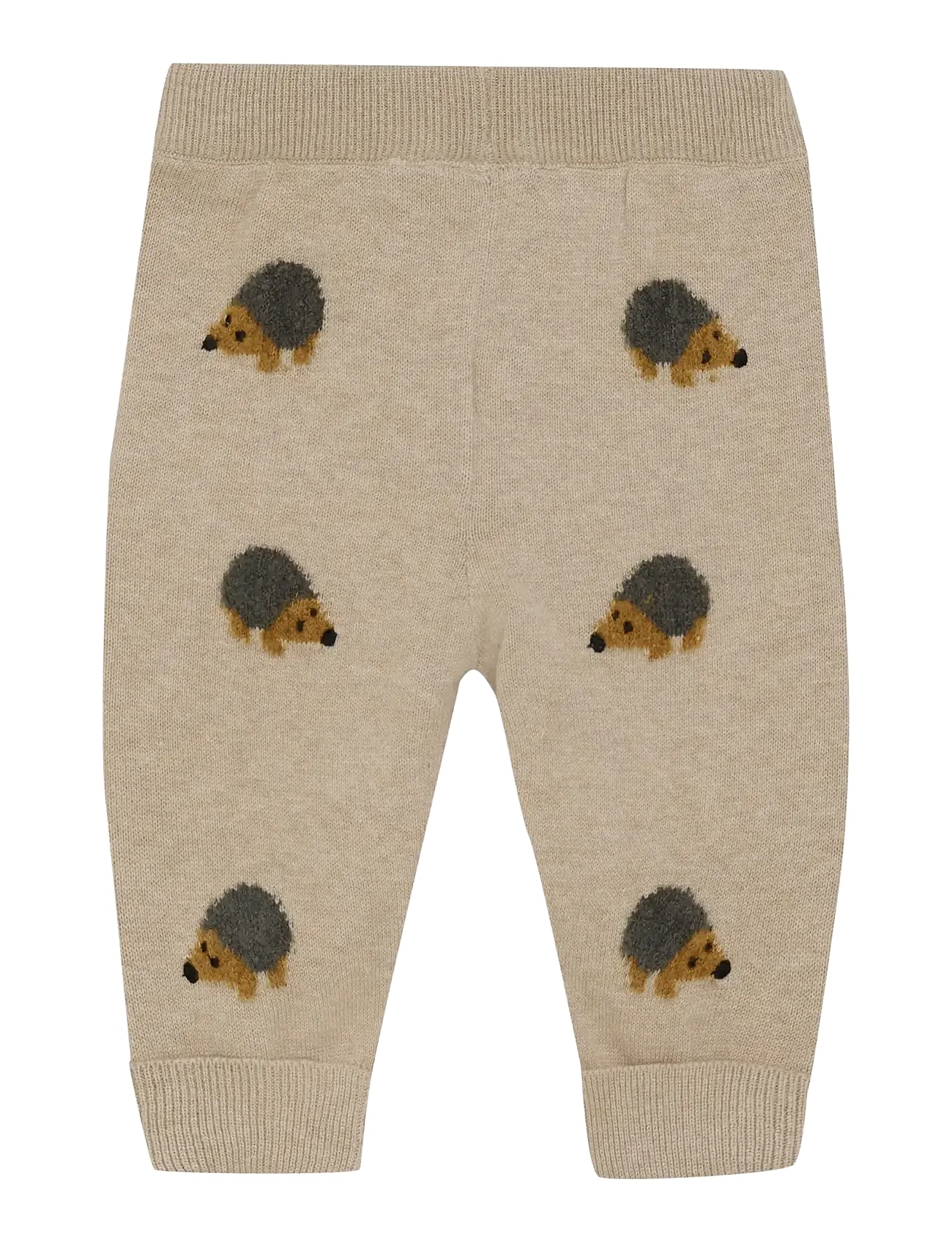 Soft knitted pants featuring an adorable hedgehog print and wide ribbed edges that guarantee a comfy fit and playful style. Designed with cozy knit fabric, ribbed waistband, and cuffs for extra snugness and charm.