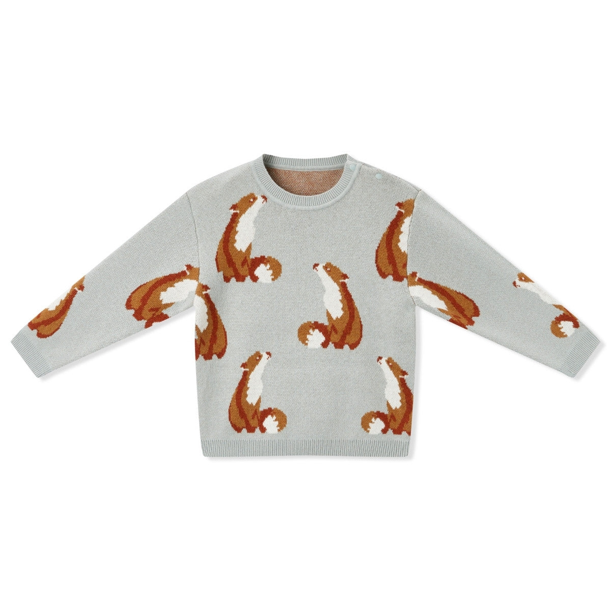 The relaxed fit features a rib-knit crew neckline with functional shoulder snap buttons for easy, over-the-head dressing. For a subtle contrasting detail, we added rib-knit cuffs and bottom edging.