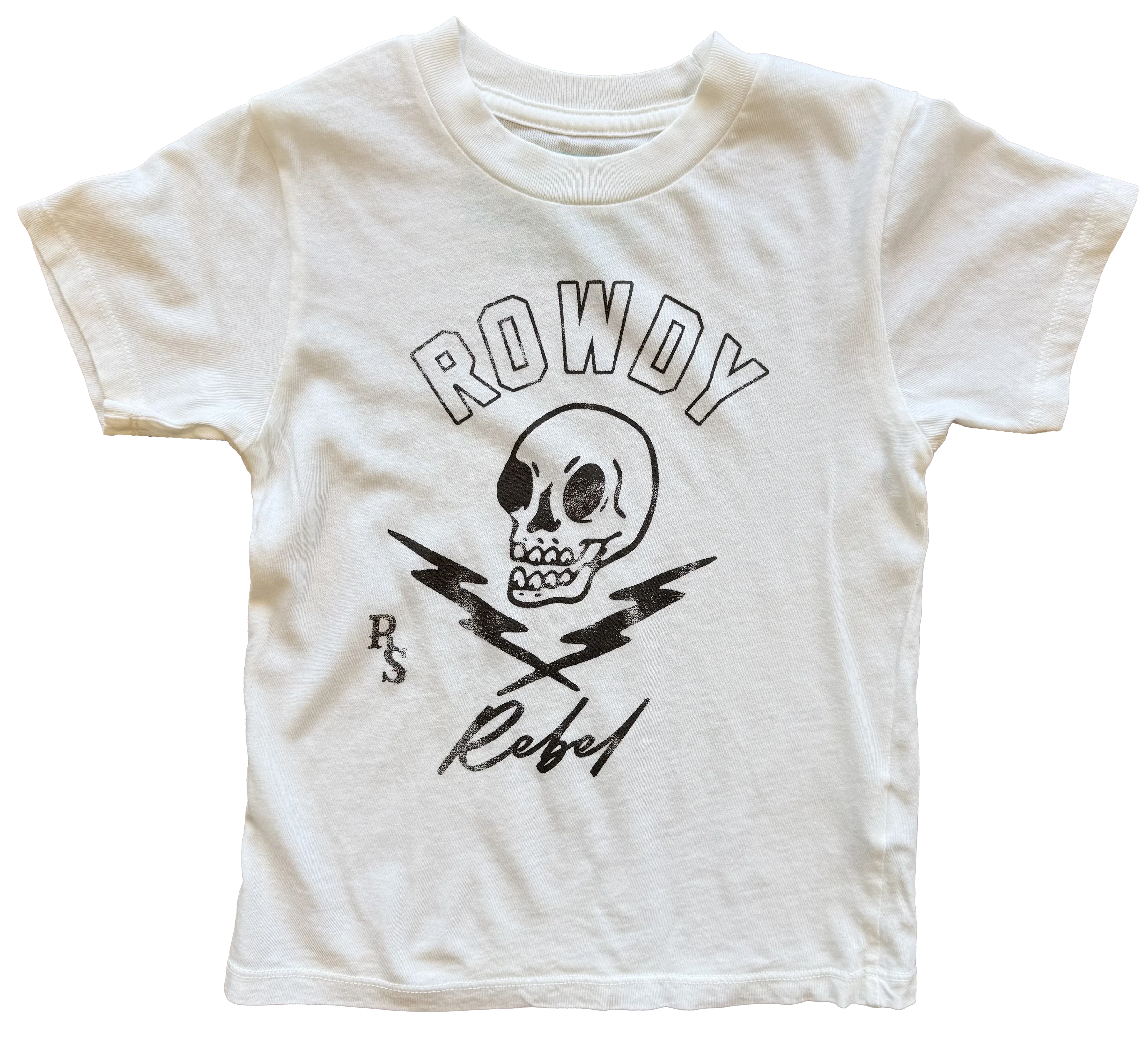 Bring the attitude with the Rowdy Rebel tee. Soft, comfy cotton and bold graphics made for kids who love loud music, cool style, and rockstar energy.
