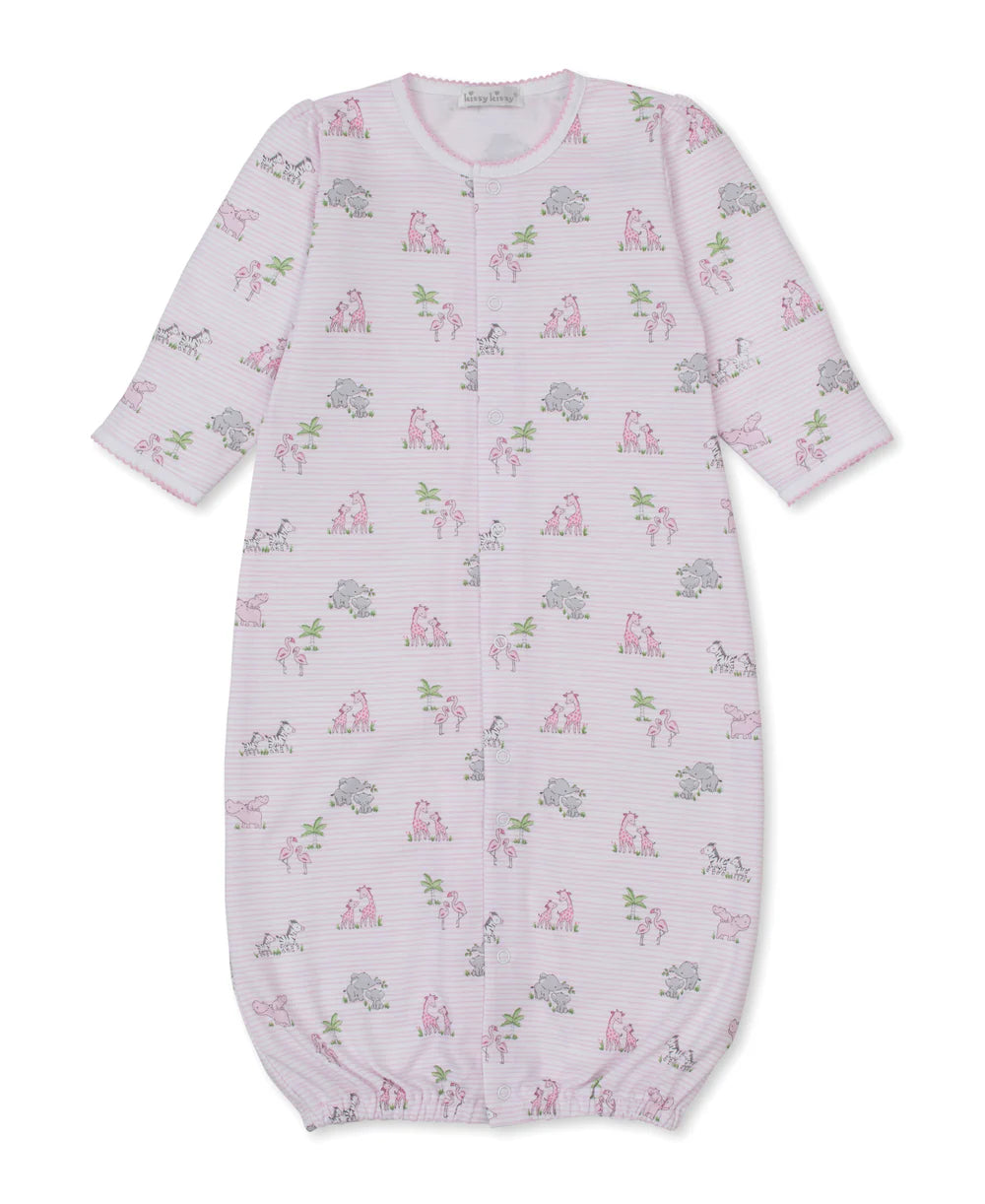 Patterned with our safari party print, our cozy converter gown is made from the softest Pima cotton for complete comfort for baby. With snaps that convert gown to playsuit, this multi-functional piece can easily go from naptime to playtime.