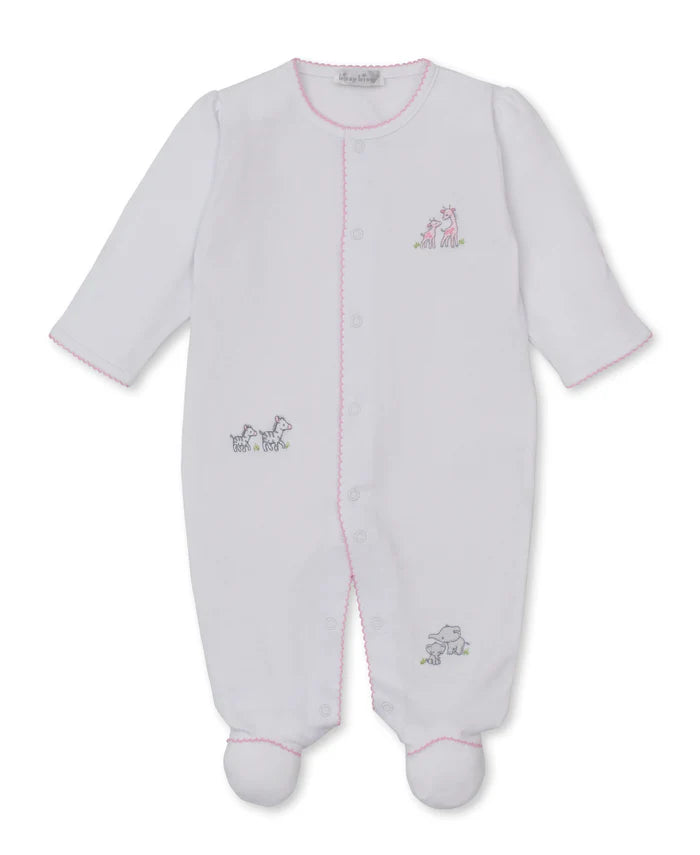 The softest, coziest footie for your baby from our Safari Party Collection. Crafted from the finest Peruvian cotton and featuring safari animal embellishments.