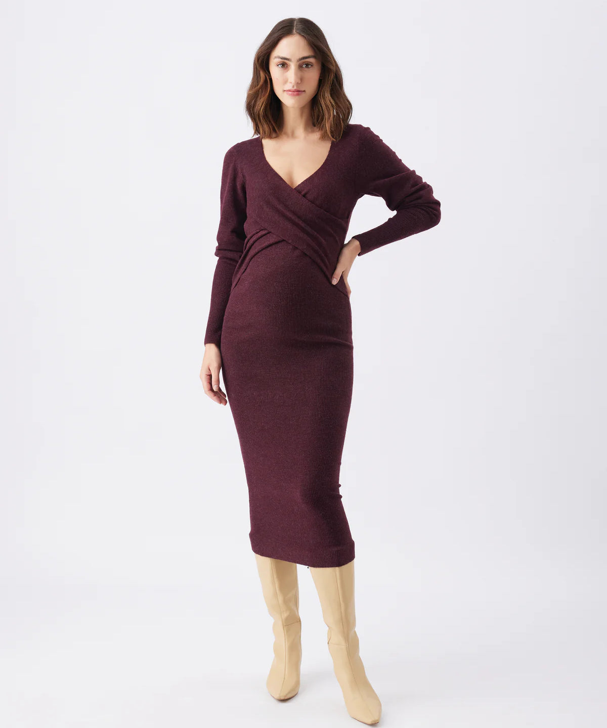 The Long Sleeve Ribbed Sweater Midi Maternity Dress