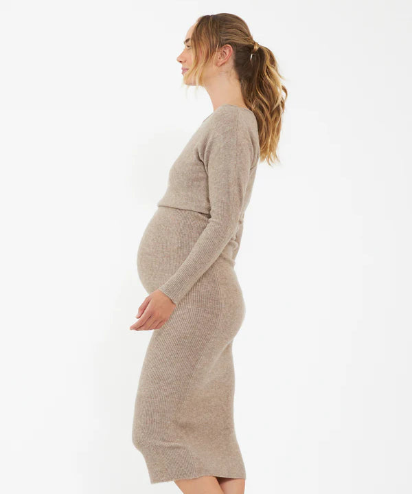 The Long Sleeve Ribbed Sweater Midi Maternity Dress