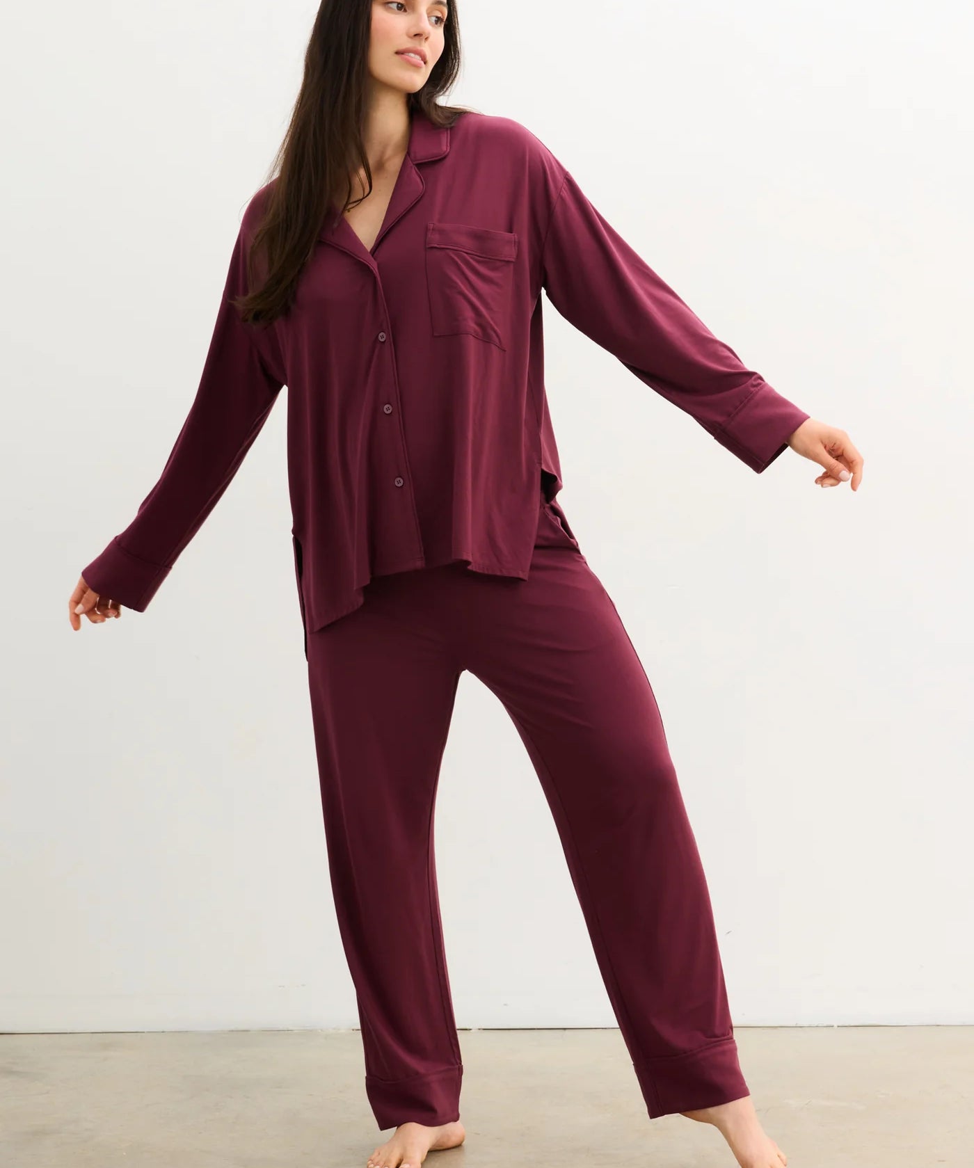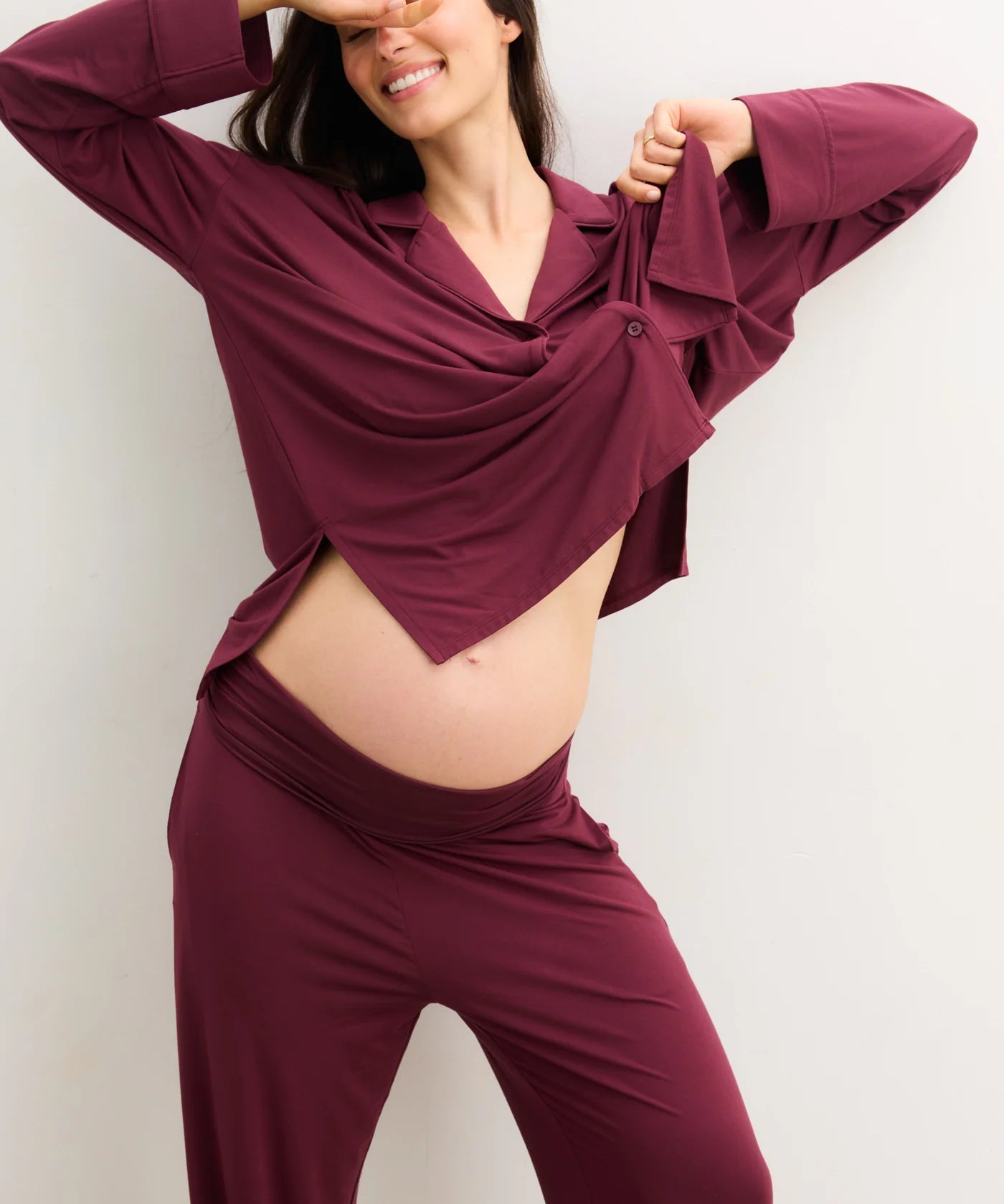 Clea Bamboo Classic Long Sleeve Maternity + Nursing Pajama