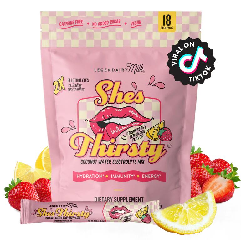 This hydration hits differently. She’s fierce, she’s natural, she’s tasty. Our Coconut Water Electrolyte Mix is a refreshing splash of strawberry lemonade or watermelon flavor that packs an extra boost of energy and immune support.*