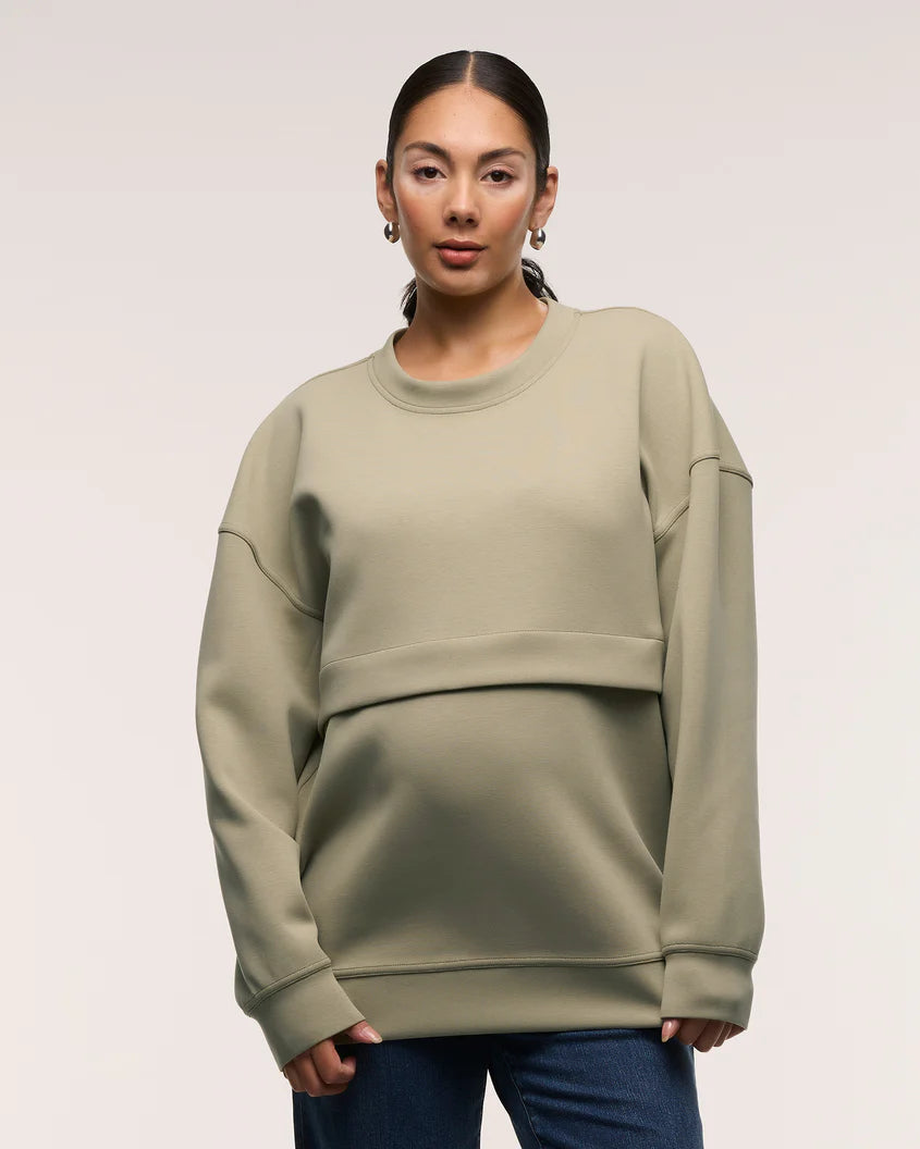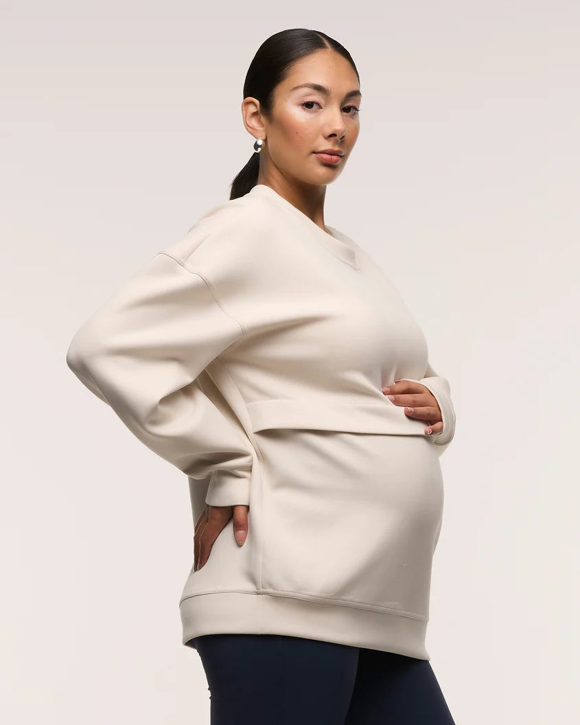 Cool yet cozy, this is a jumper you will love through all trimesters and into nursing. The oversized style is cut in a boxy shape with a drop shoulder and features a hidden zip under the bust to make for quick and discreet nursing. Made in a cotton and tencel blend which feels soft on the skin, it also has the perfect amount of stretch. Pair it with our activewear bottoms for when you’re out and about, or with our denim for a relaxed weekend look.
