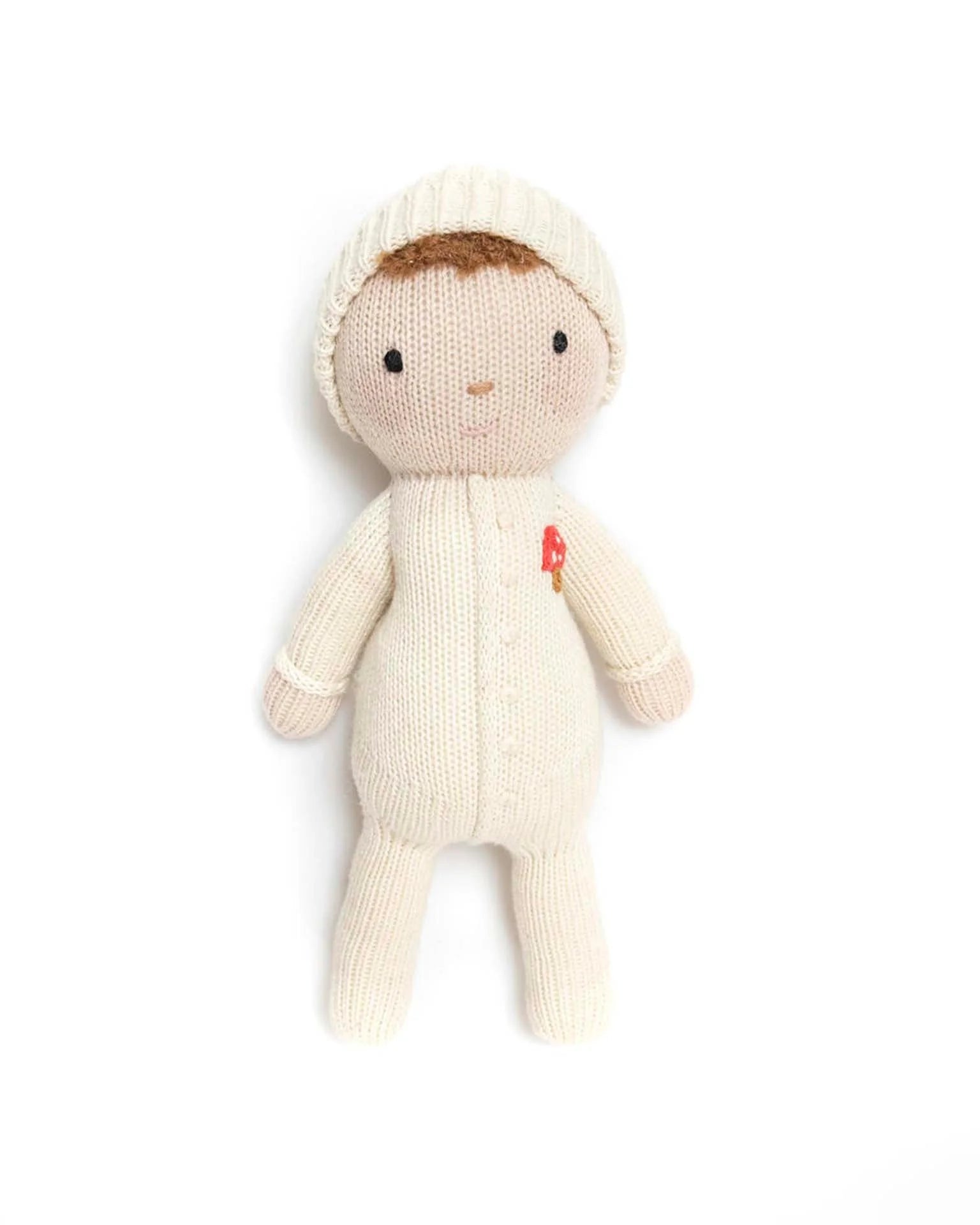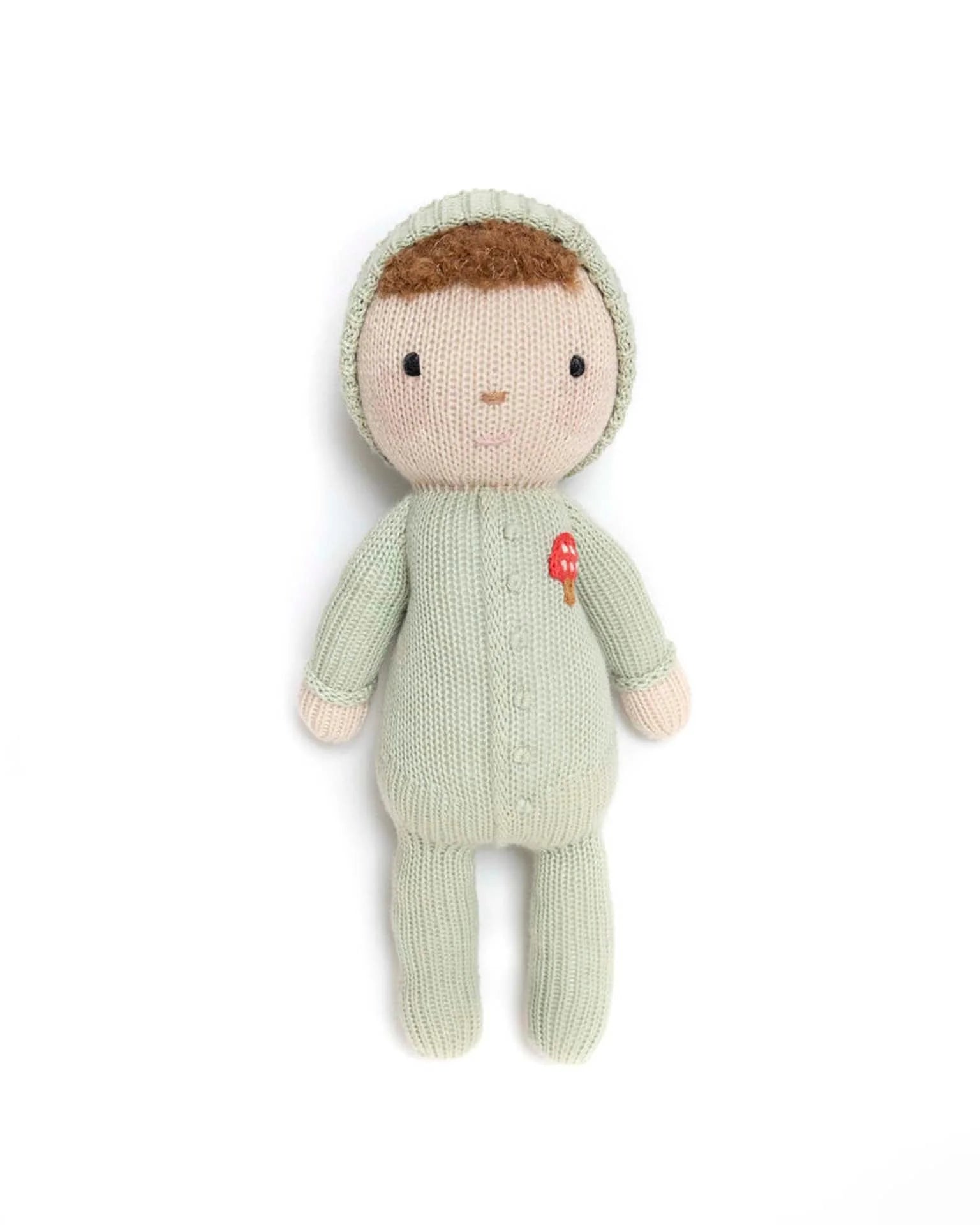 Dressed in a cozy green knit outfit and adorned with a charming little red mushroom, Baby Liam embodies the perfect blend of playfulness and warmth. This sweet doll isn’t just about his delightful appearance, Baby Liam is crafted with the utmost care, ensuring he is soft to the touch, durable, and ready for every cuddle and adventure. His gentle smile and inviting expression make him a comforting companion, one that your little one will cherish through every milestone.