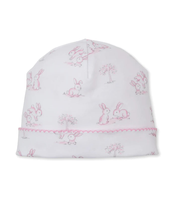Keep baby's head warm and covered with this cozy hat covered in our adorable springtime bunny fun print. Made from 100% Pima cotton for the softest, snuggliest fit for baby.