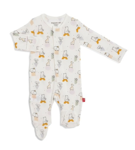 Organic cotton Magnetic Footie, designed with magnetic closures, is a quick and quiet lifesaver for all-day and middle-of-the-night diaper changes—that's up to 12 times a day (!). Made from GOTS certified organic cotton, this sleeper is so soft, breathable, and gentle on sensitive skin.