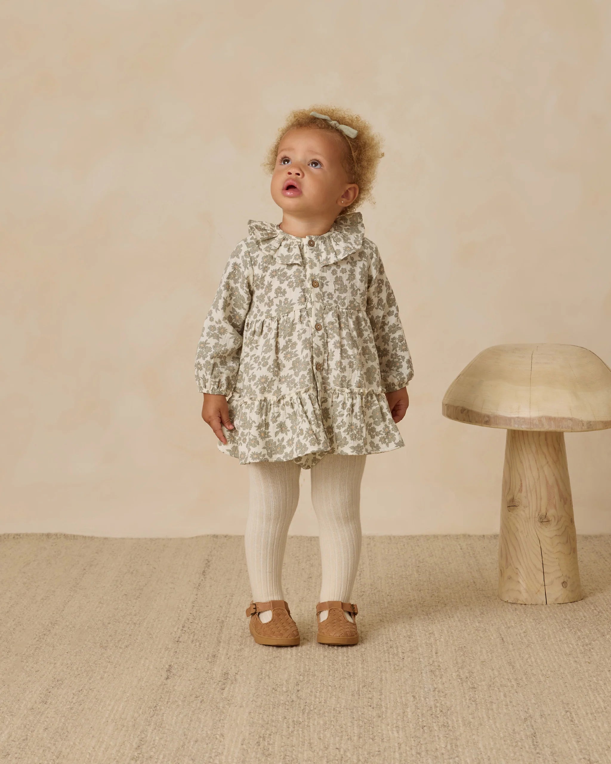 Rib knit footed tights made from soft, stretchy fabric to keep little ones warm. Layer under one of our dresses for an extra sweet look.