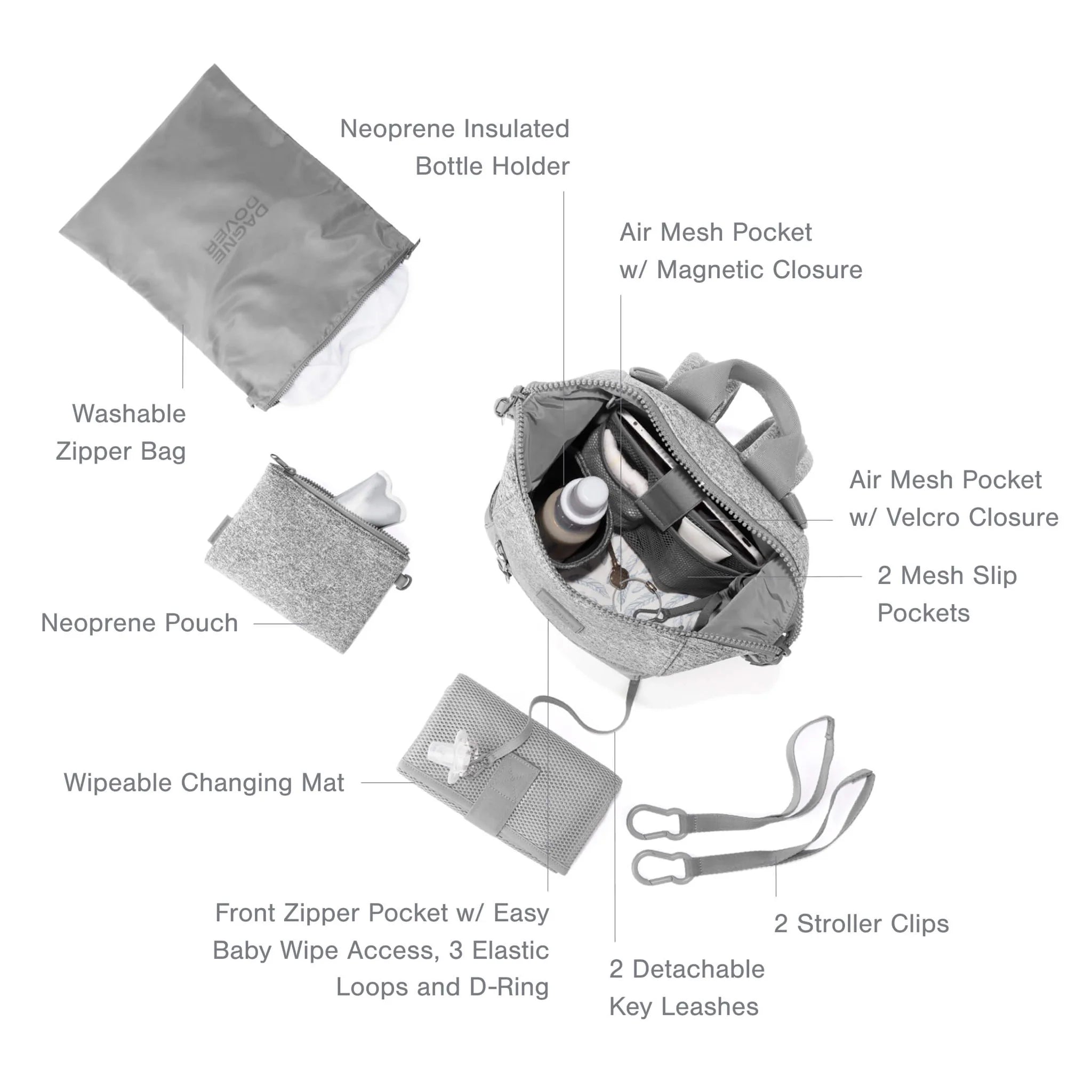 Looks like a backpack. Holds all of your baby essentials. Best for: