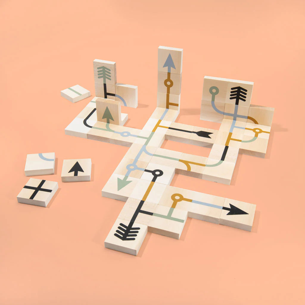 Chips are quarter-blocks. Made from recycled Midwestern basswood. Use the paperboard tray for storage or display.