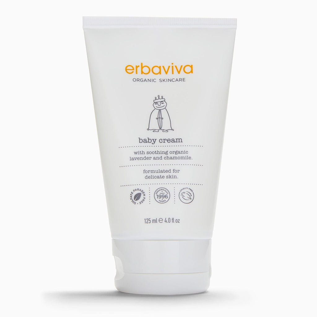 Wholly nourishing and thoughtfully made with the highest quality natural emulsifiers and organic essential oils. Erbaviva organic baby cream moisturizes tender and sensitive skin with its super-clean and luxuriant blend of premium ingredients, including aloe, shea, and cocoa butter. Soothingly scented with Erbaviva’s custom blend of organic lavender and chamomile essential oils. This all-natural baby ointment is a perfect formula for the body and face of babies and sensitive adults.