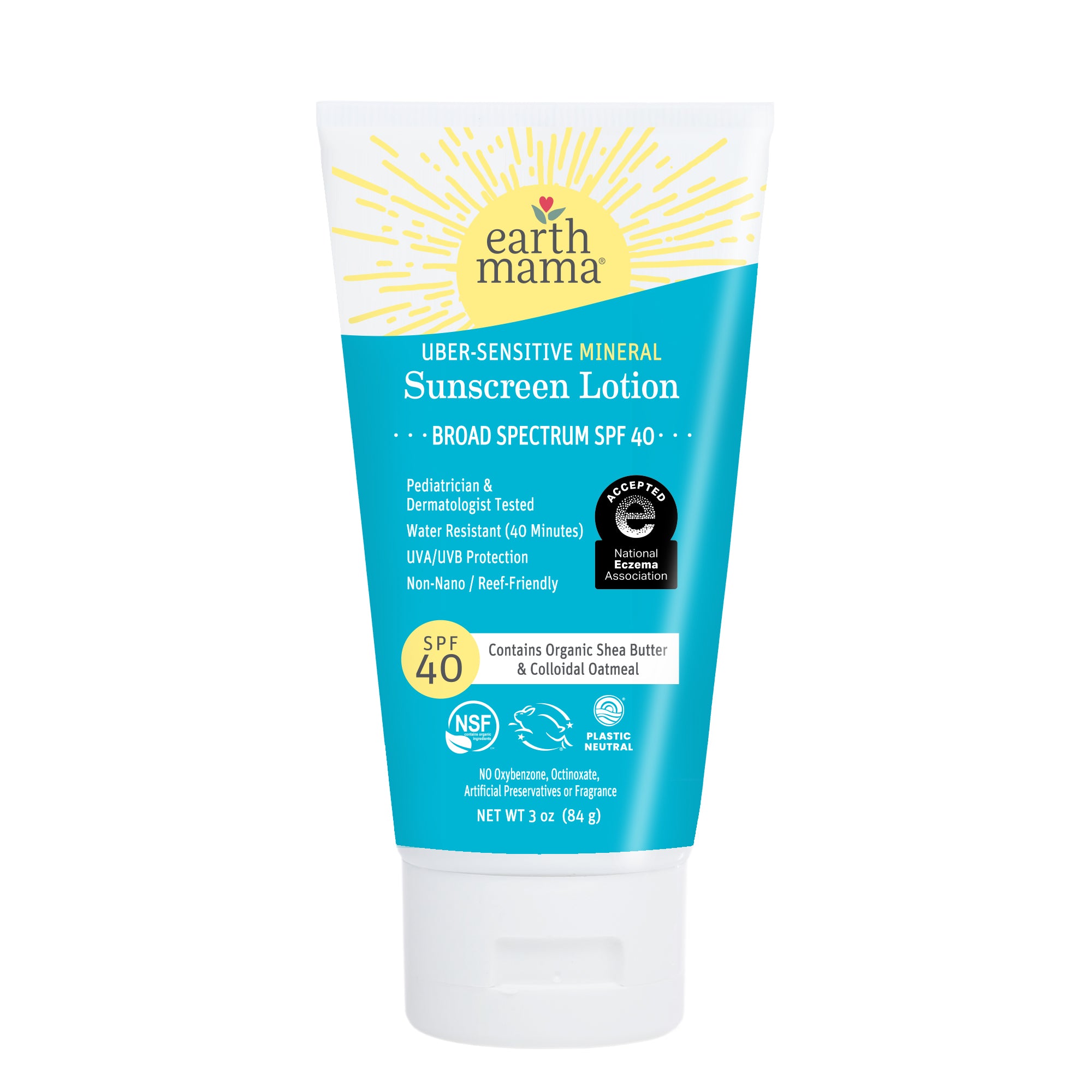 The safest for the rashy-est of skin, so there’s plenty of calming organic colloidal oatmeal and organic shea butter in this creamy uber-sensitive mineral sunscreen lotion (as in way more than the amount of colloidal oatmeal than is required by the FDA to be in an eczema cream)! Thoughtfully formulated so that it’s non-irritating and gentle for sensitive skin, this is a reef-friendly, non-toxic, cruelty-free sunscreen with non-nano zinc — that sits on top of the skin rather than being absorbed, so it can scatter sun rays.