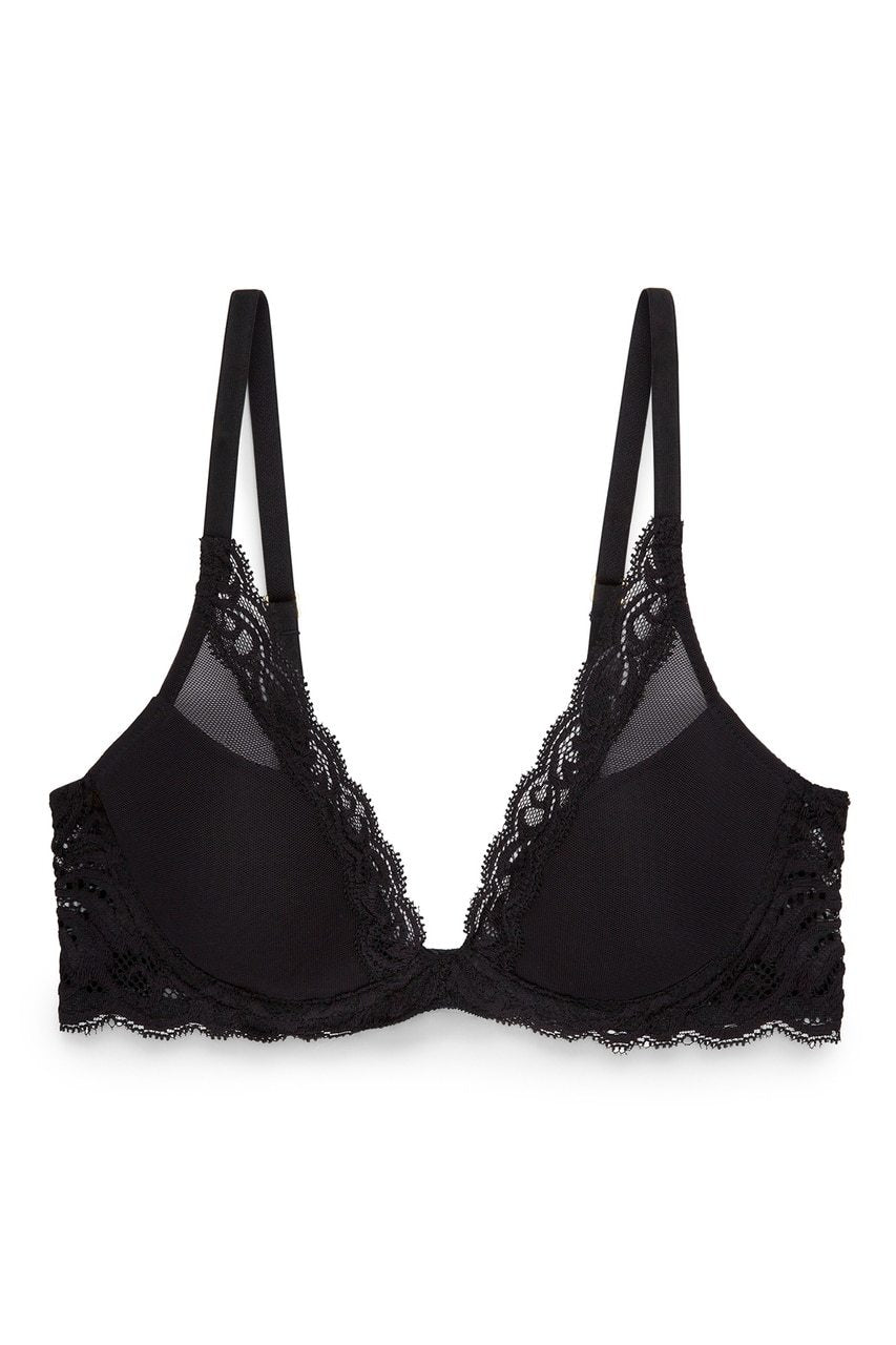 The lightweight Natori Feathers Maternity Contour Plunge Bra offers the perfect transitional piece for during and after pregnancy. This bra is your go-to for everyday wear. Featuring Natori's signature Italian lace trim.