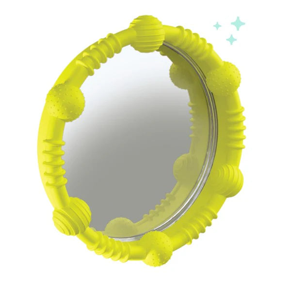 Lookee will turn bath time into a fun-filled learning adventure! The textured handles provide tactile stimulation and are safe for teething children. The mirror encourages eye contact and focus. Children can play, explore and delight in their own reflection.