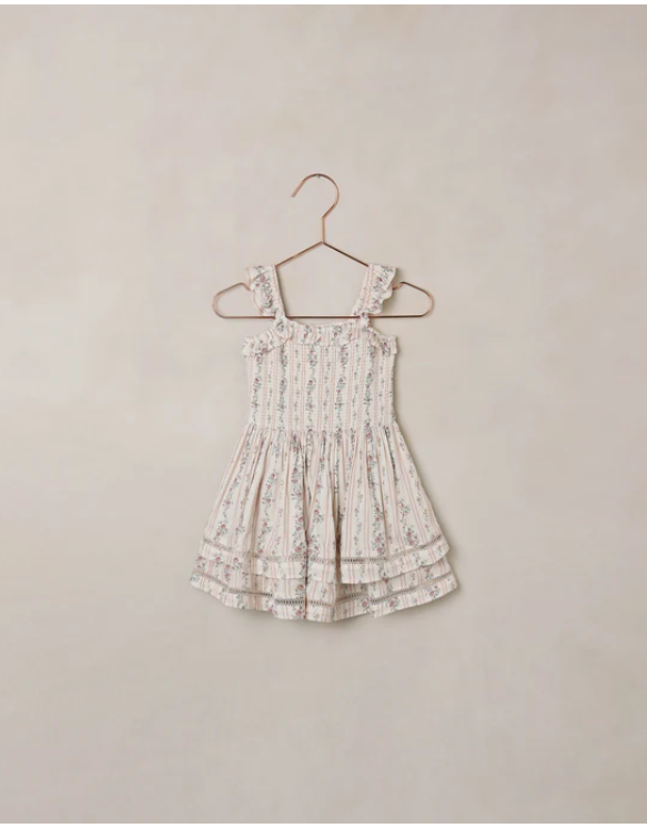Birdie Dress features a smocked bodice with ruffle straps and a flowy skirt perfect for twirling.