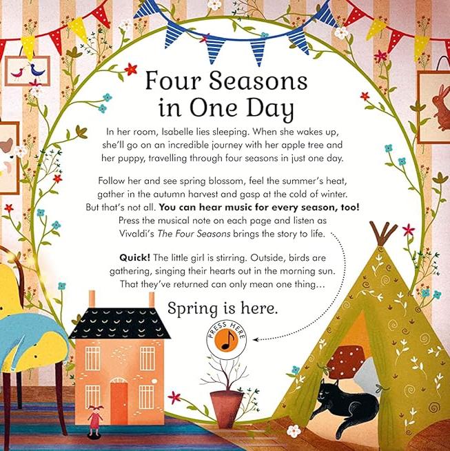 Discover what it would be like to travel through the four seasons in one day in this musical story based on the classical masterpiece The Four Seasons—push the button in each breathtaking scene to hear the vivid sound of an orchestra playing from Vivaldi’s score.