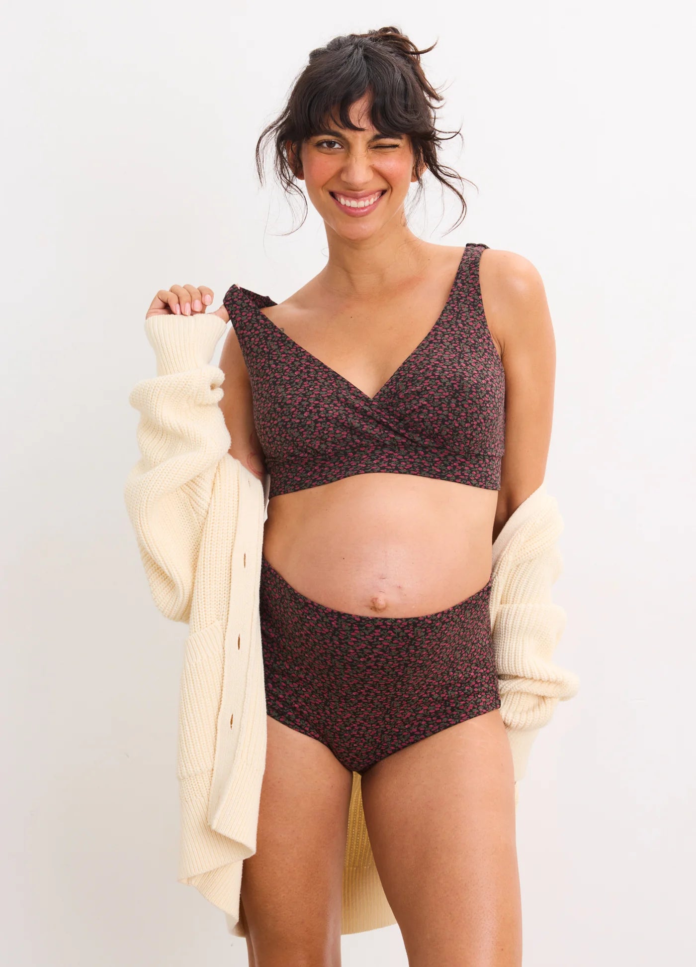 This wireless and hardware-free sleep bra was designed with optimal comfort in mind. The crossover front design features an easy pull-down capability for seamless feeds, AM to PM. A stretchy, comfy bra perfect for some much-needed shuteye.